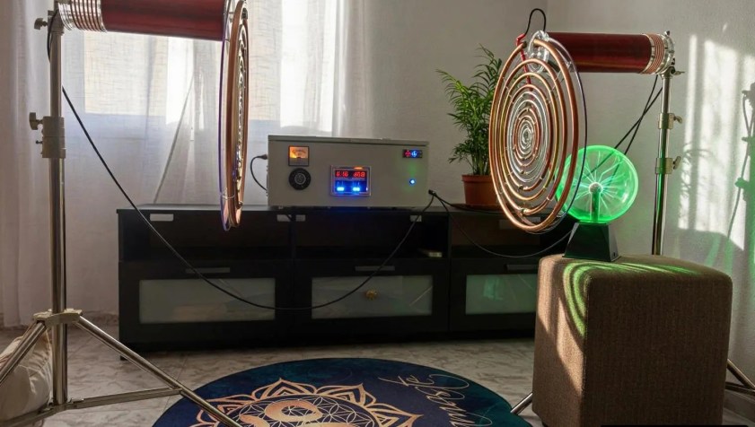While MedTech Europe relies entirely on a single coil, the Quantic Aether v999 incorporates two Tesla coils positioned horizontally as seen in the photo.