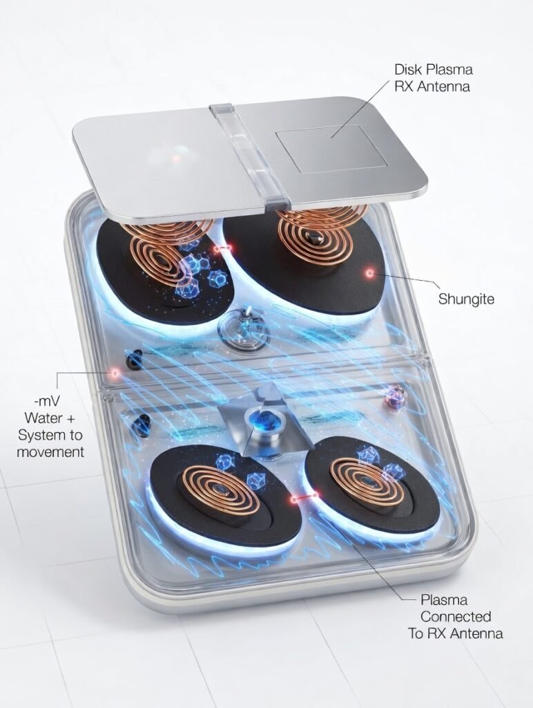 3. Action of Fullerenes and Photons The Plasma + C60 Fullerene combination generates an environment rich in coherent photons within the circulating water — the fullerenes act as carriers and stabilizers of that photonic charge, which is then absorbed by the tissues through the soles of the feet.